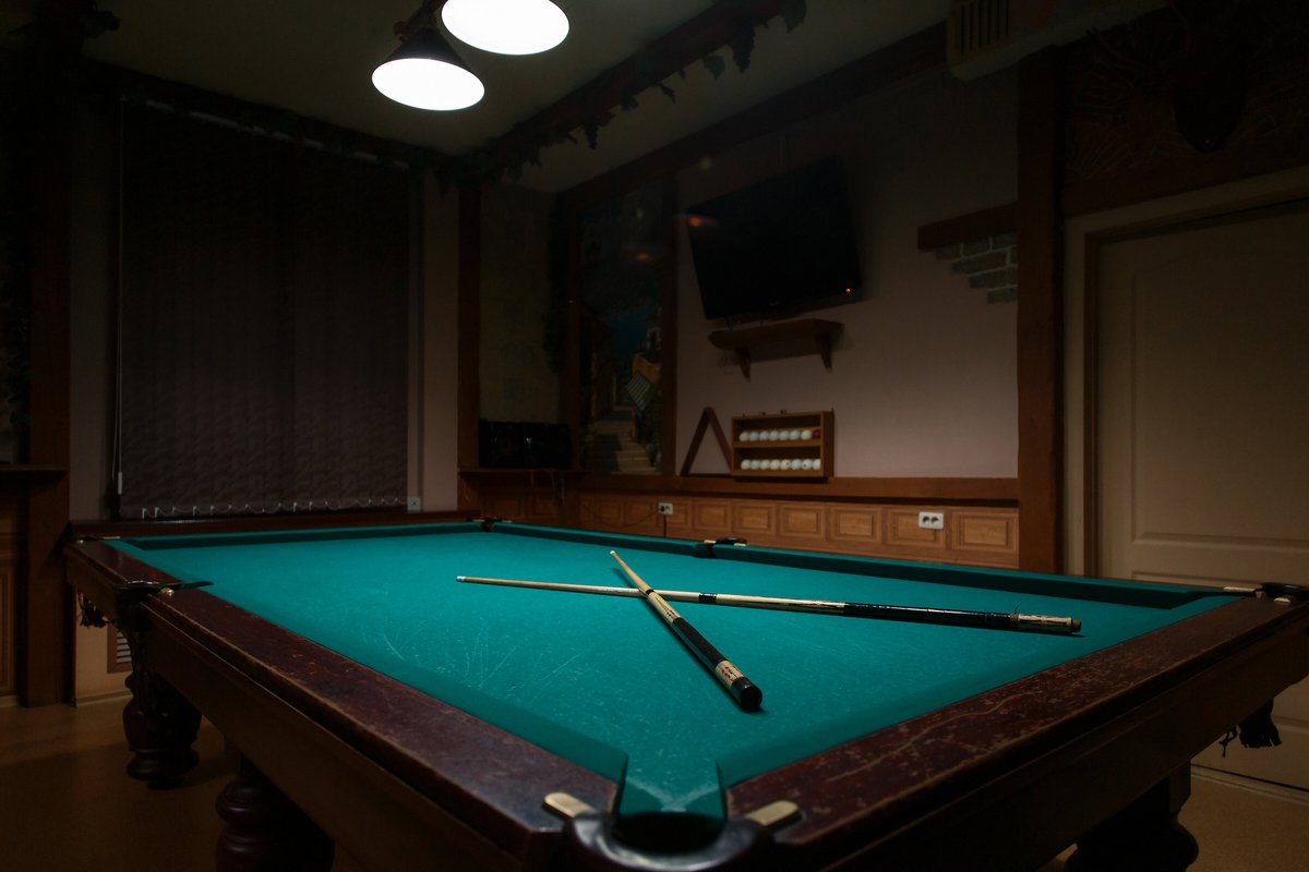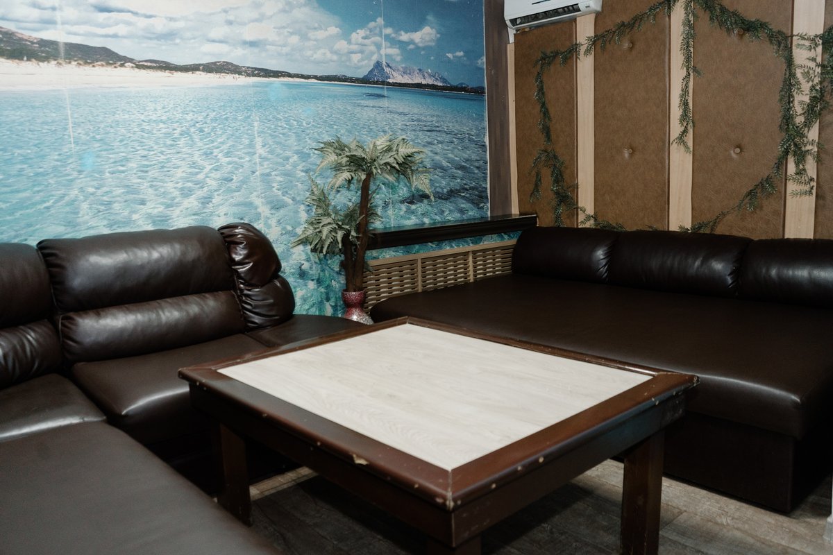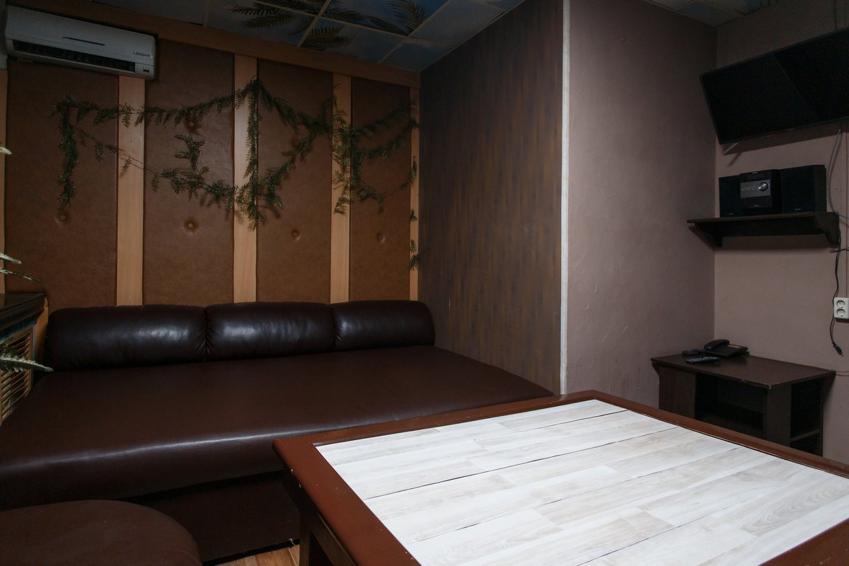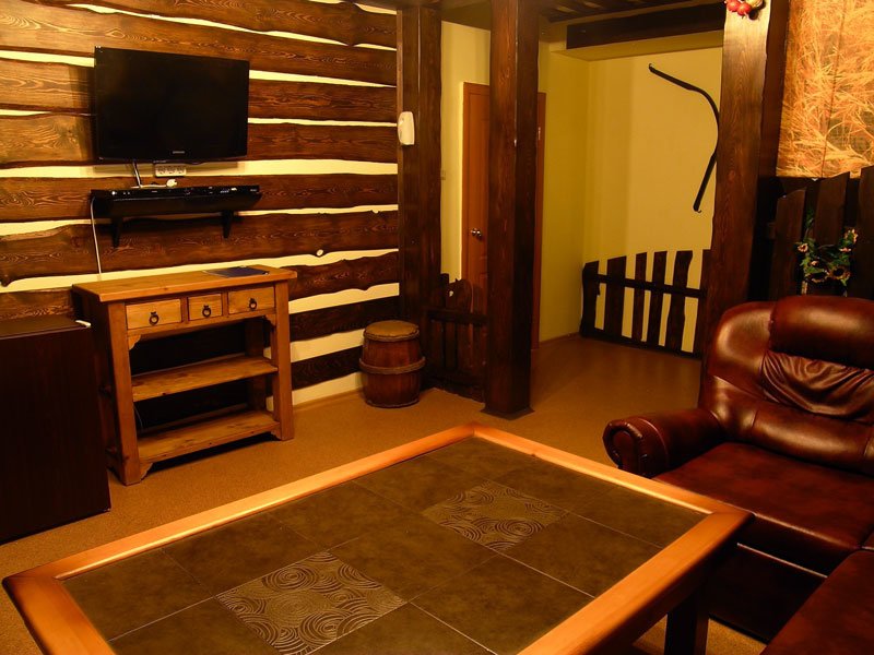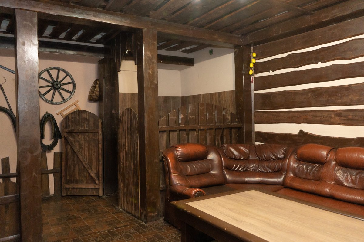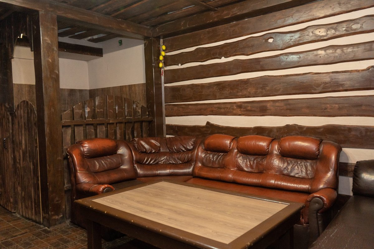 Не хочется в бассейн? Не проблема! Вместо этого можно провести время в нашей комнате отдыха. Мы постарались создать здесь комфортный, стильный интерьер из максимально натуральных, экологичных материалов, выбрать мебель, которая будет одновременно удобной и приятной глазу. Надеемся, что вам понравится! Для создания настроения у нас есть бильярд и караоке. Также у нас работает бар, где вы можете заказать блюда русской кухни, а если нужно, прийти и со своей едой - мы не против! Только не забывайте, что плотная трапеза непосредственно перед посещением парной - это не самая хорошая идея, согласно мнению врачей. А вот после парной она совсем не повредит!